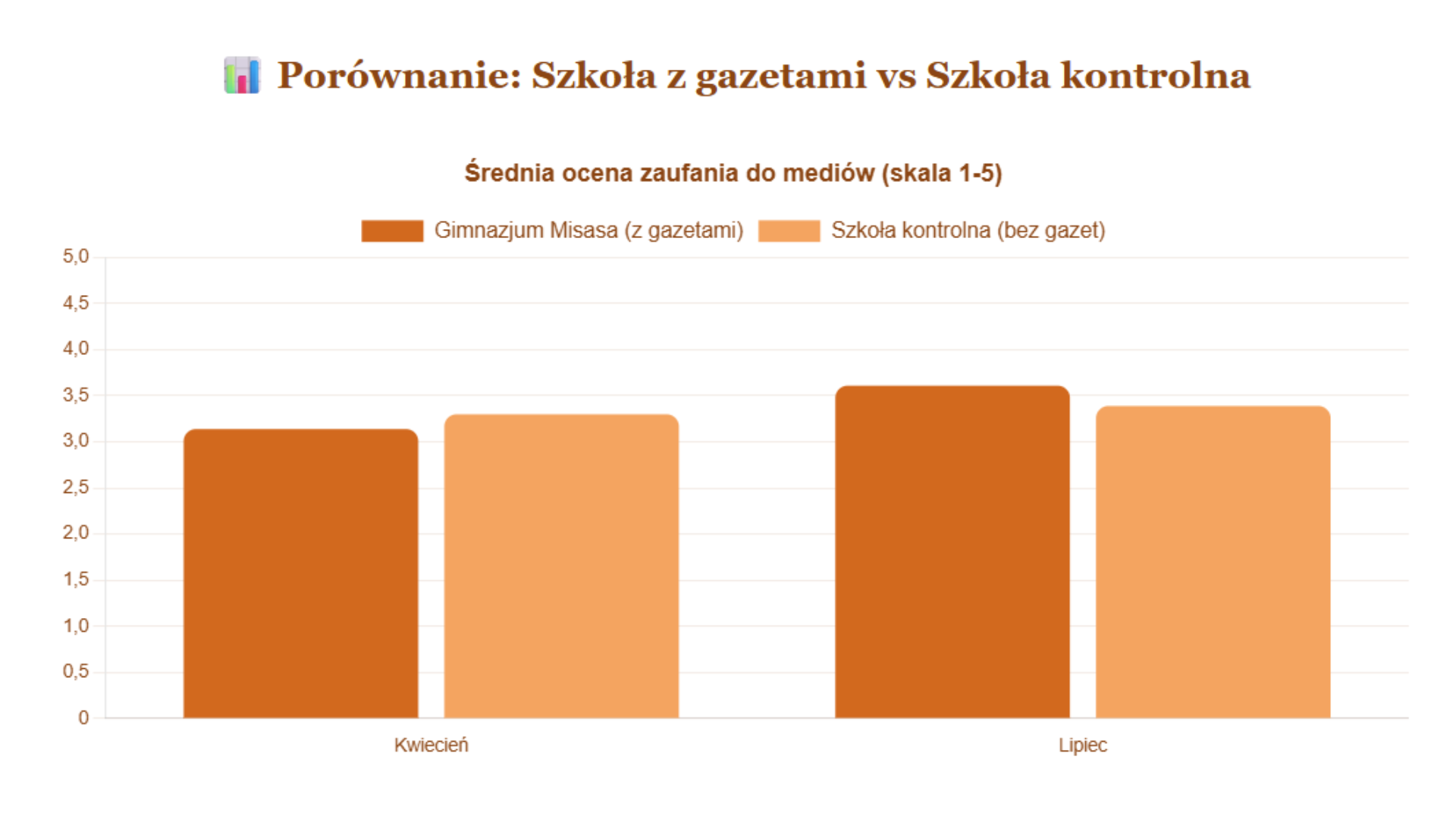 Wyniki tego eksperymentu są naprawdę uderzające i dają nadzieję w czasach, gdy mówi się o kryzysie dziennikarstwa i upadku mediów tradycyjnych. W kwietniu, na początku badania, zaledwie trzydzieści cztery procent uczniów z Gimnazjum Misasa oceniało media na cztery lub pięć punktów – czyli wyrażało stosunkowo wysokie zaufanie. Średnia ocena wynosiła 3,14, co jest wartością bliską środkowi skali, sugerującą raczej obojętność lub umiarkowany sceptycyzm, typowy dla pokolenia, które dorastało słysząc o manipulacjach i fake newsach.